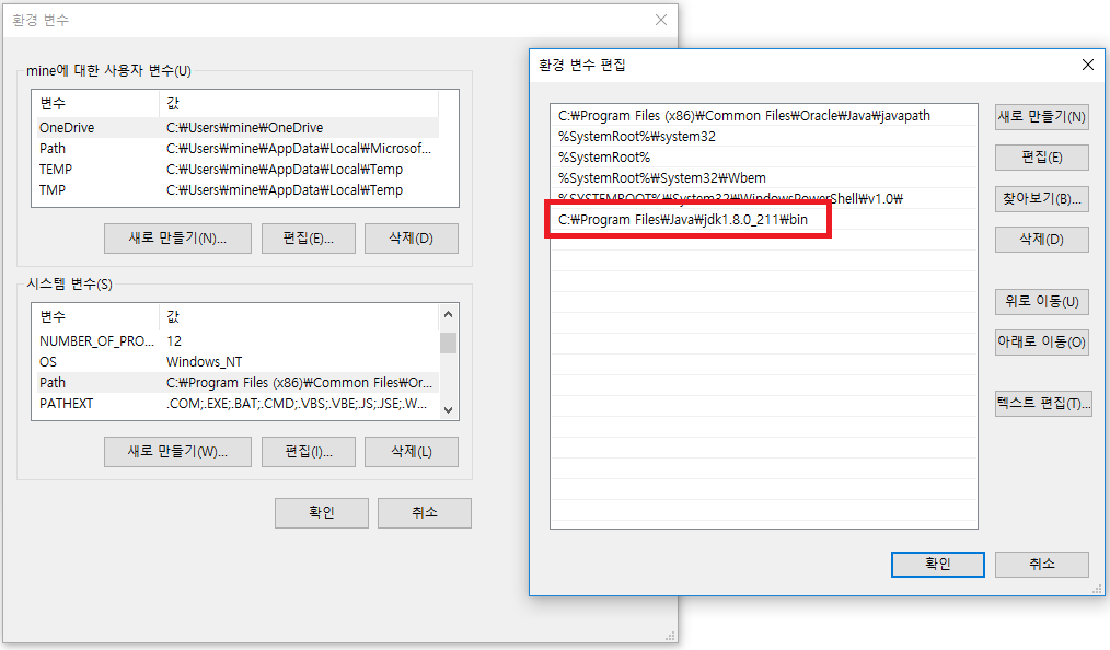 다음은 Path에 자바의 bin 경로를 지정하도록 하겠다.
