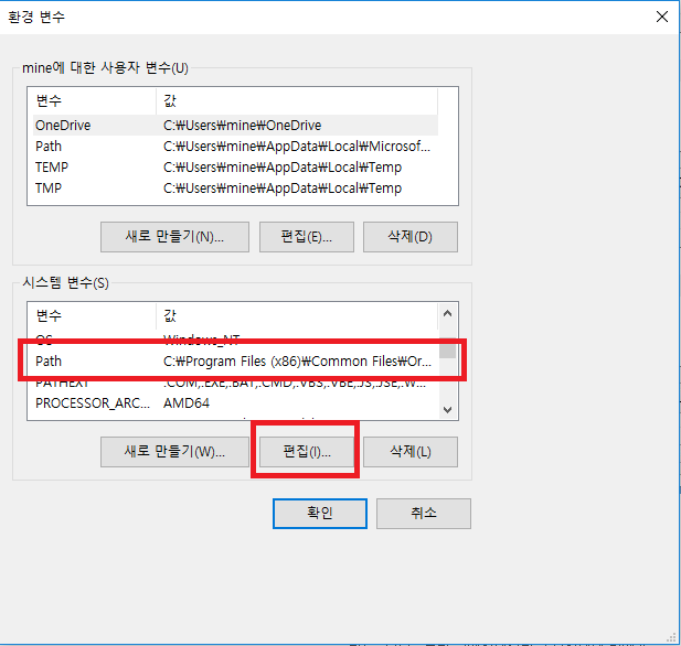 Path 항목을 선택한 후 편집 버튼을 클릭한다.