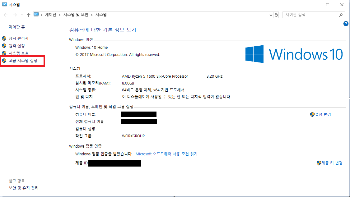 다음 아래 표시된 고급 시스템 설정으로 이동한다.