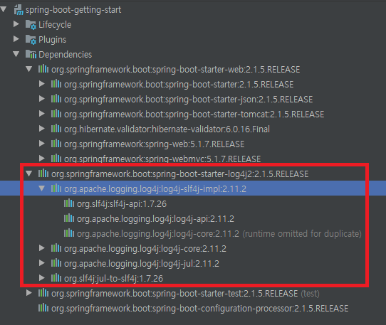 이제 제외한 logback대신 log4j를 dependency에 추가해주도록 하자.