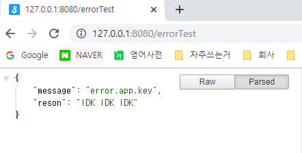 만약 curl을 이용해 아래와 같이 요청한다면 json 형태의 에러 응답을 하게 될 것이다.